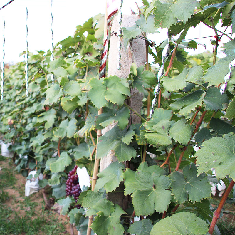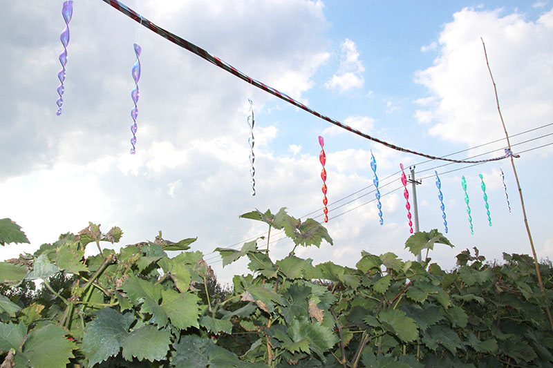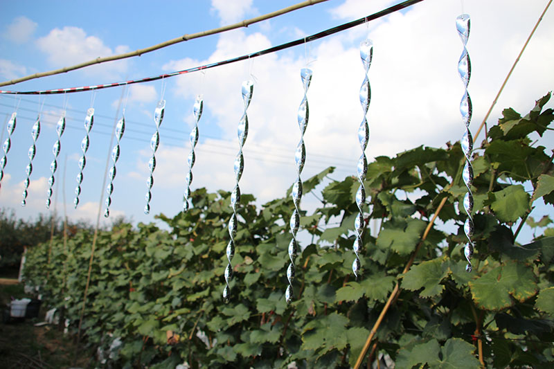 烟台美燕材料包装材料有限公司生产的【福礼】牌驱鸟棒,有多种型号。30cm螺旋红色、绿色、紫色、蓝色、银色;50cm螺旋红色、绿色、紫色、蓝色、银色,10支一包装。驱鸟棒由于是螺旋的棒体,随风更易旋转反光,不同长度适合不同的植物,悬挂于果树上即可